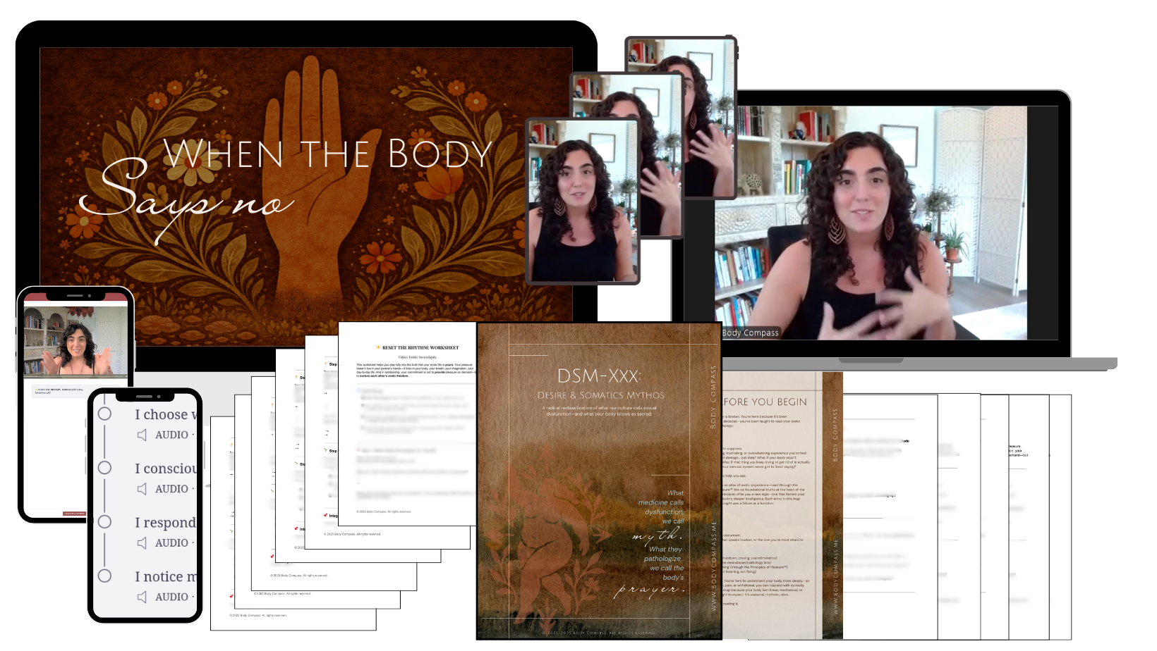 The DSM-X is a 100+ page companion guide included with this course. It goes symptom by symptom — translating every common sexual diagnosis through the Body Compass Method, so that what you've been told is wrong with you finally starts to make a different kind of sense. This is a reference you'll return to long after the course is finished.